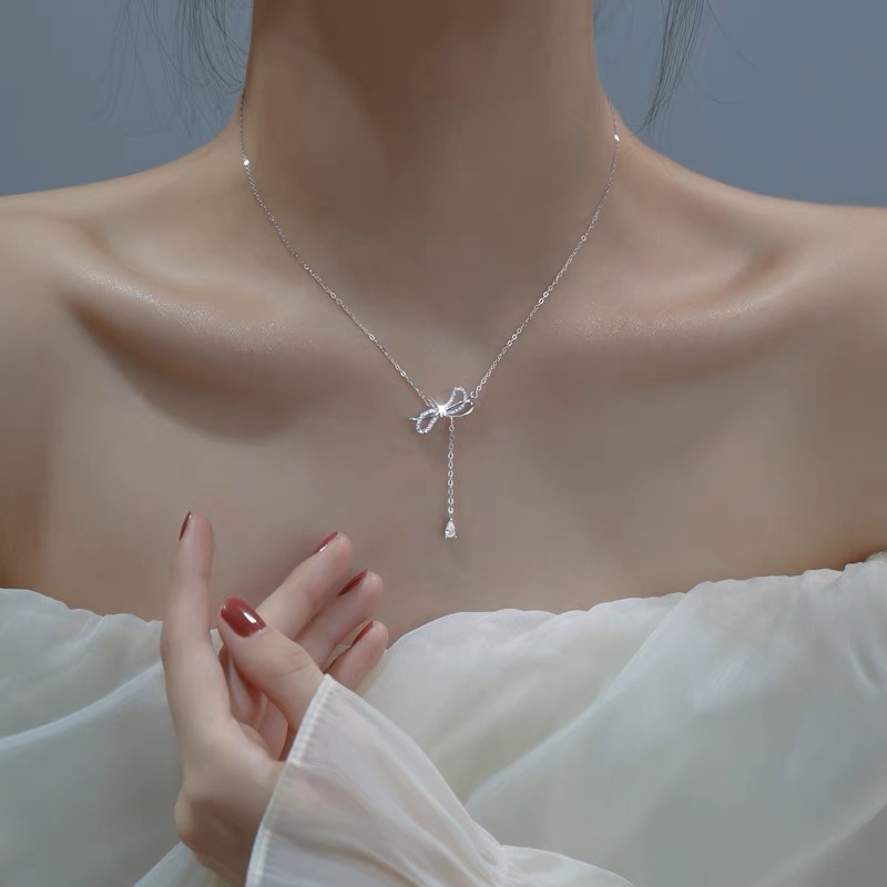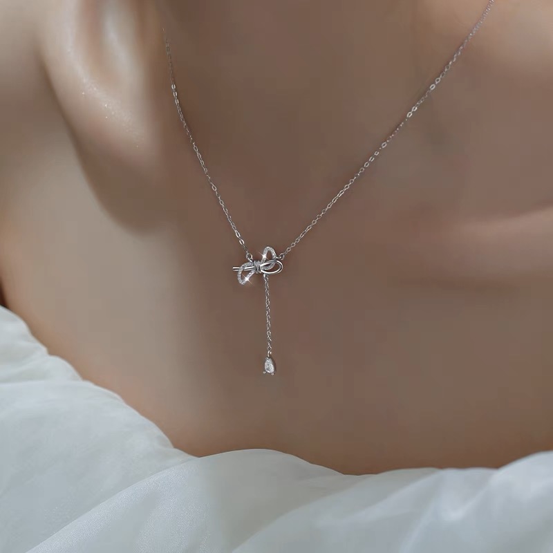 Tên sản phẩm :Dây chuyền bạc ý 925 pha lê Swarovski dây chuyền nơ kiểu CECY 1903