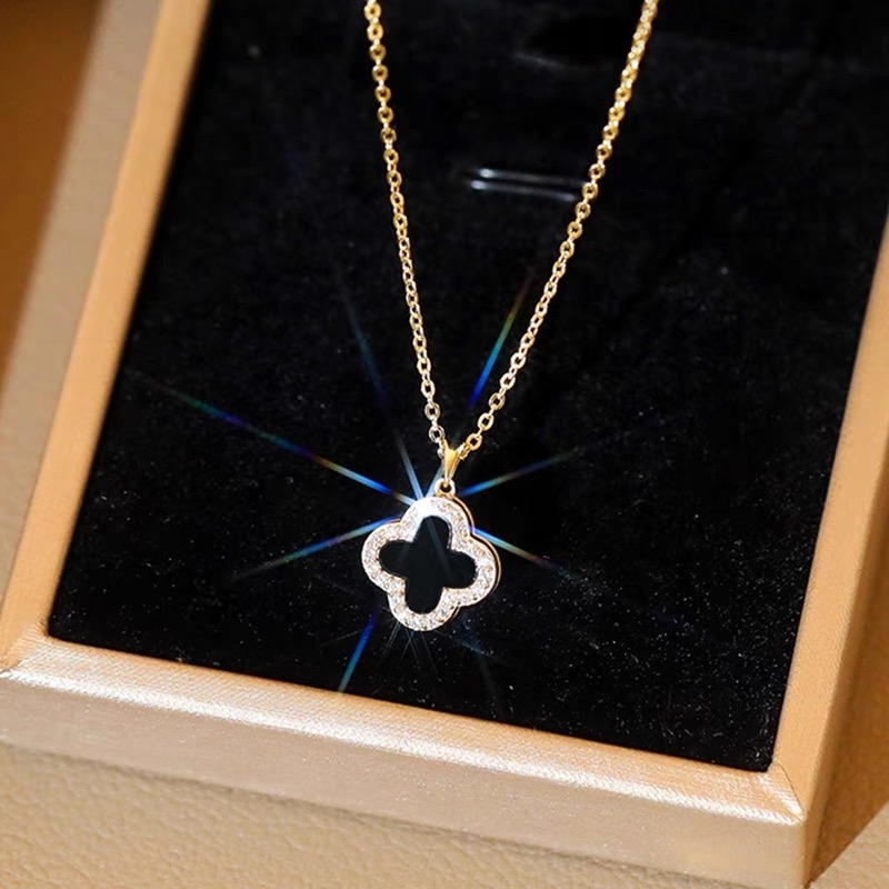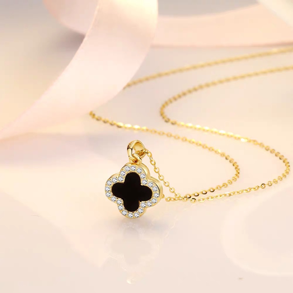 Tên sản phẩm : Dây chuyền cỏ bốn lá 2 mặt ĐEN và Trắng Bạc ý 925 đính pha lê Swarovski CECY 06096