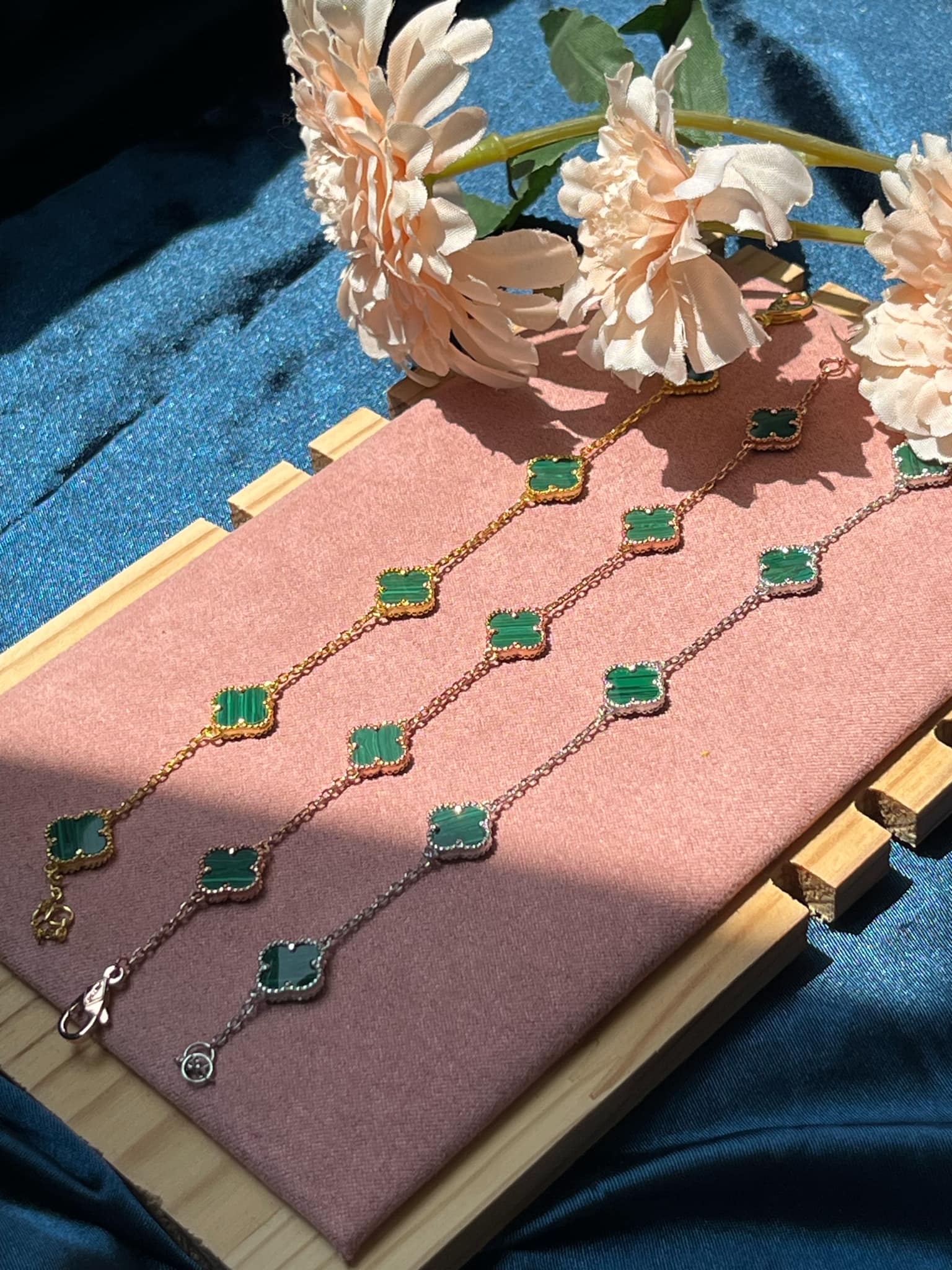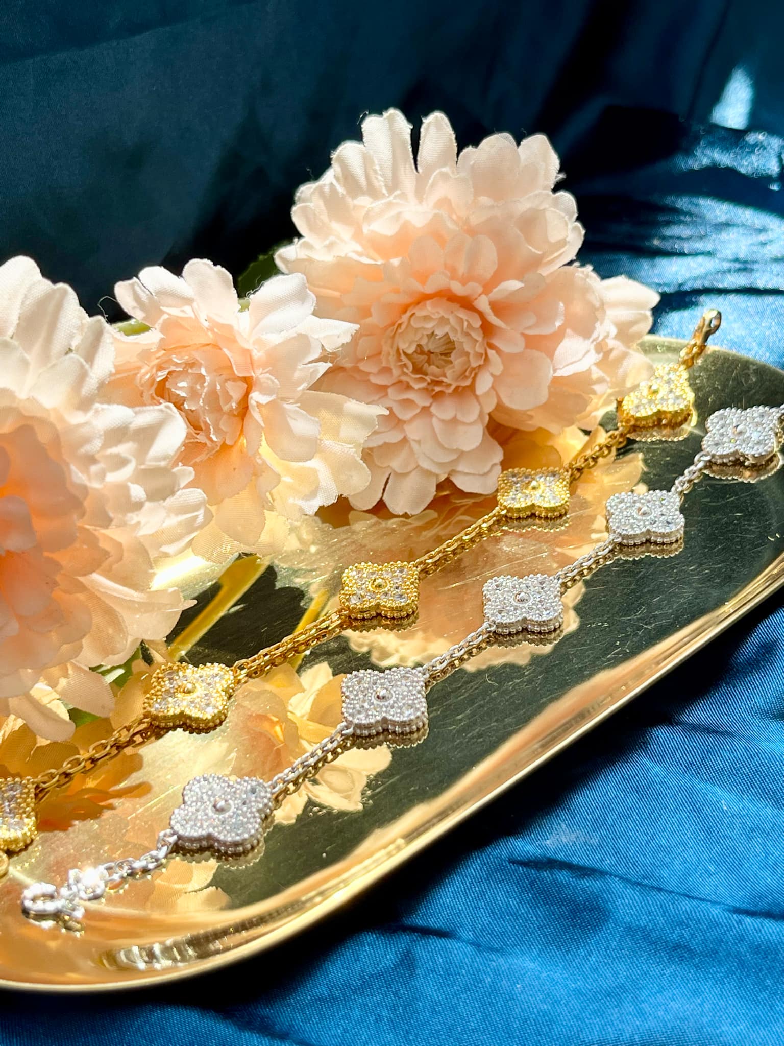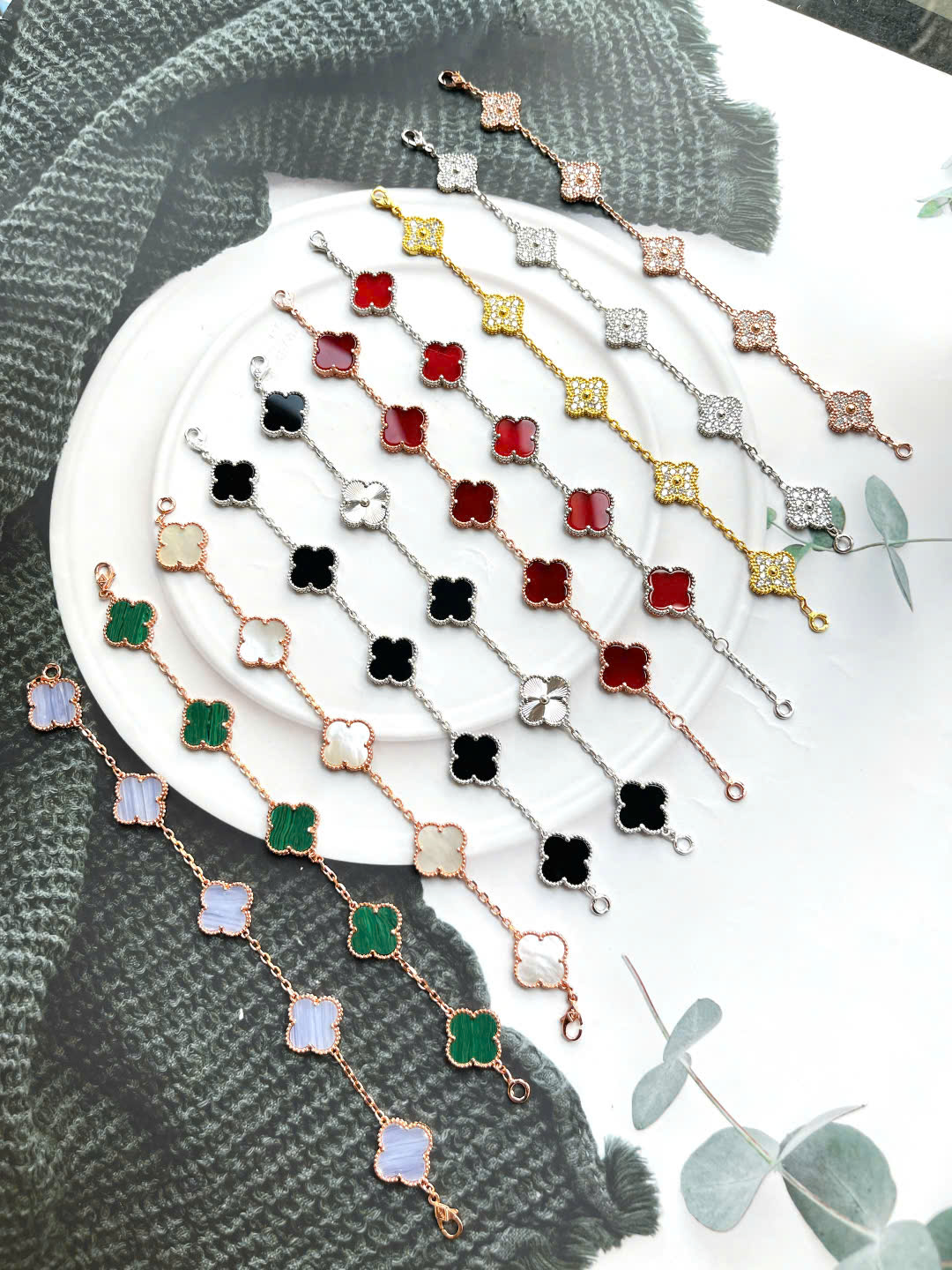 Tên sản phẩm : Vòng tay cỏ 4 lá CECYDEJEWEL bạc ý mạ vàng 18K Vòng Tay Đá Thiên Nhiên size 13mm tinh xảo đẳng cấp