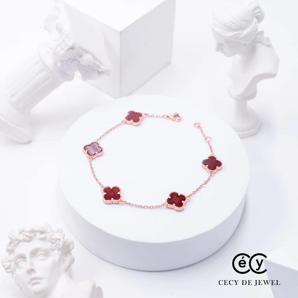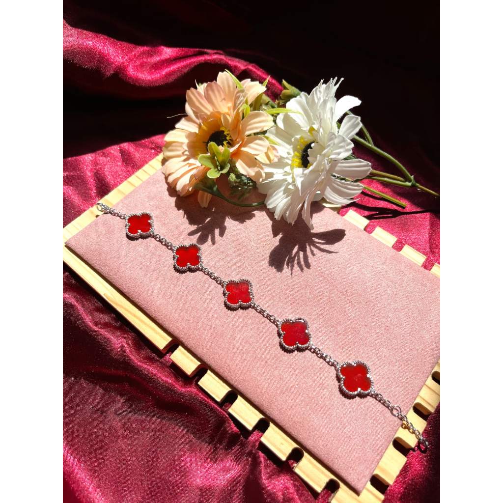 Tên sản phẩm :Lắc tay cỏ 4 lá màu đỏ bạc ý