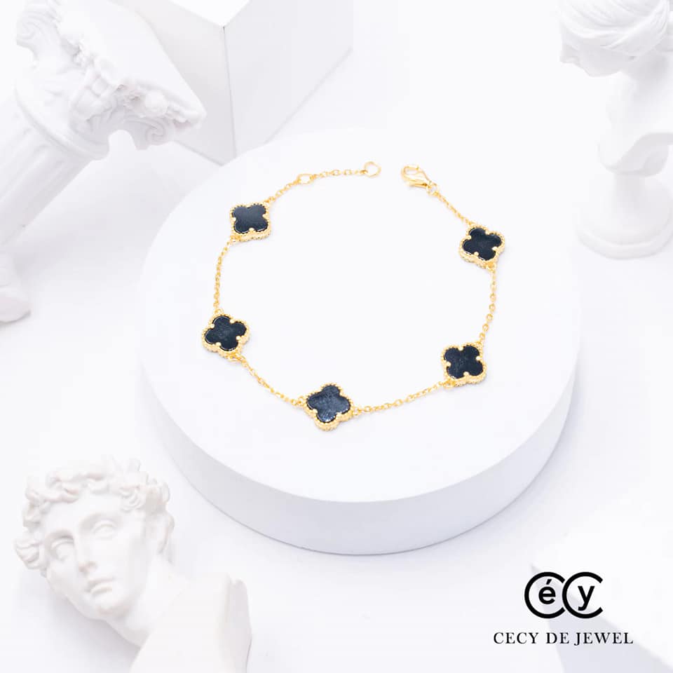 Tên sản phẩm : Vòng tay cỏ 4 lá CECYDEJEWEL bạc ý mạ vàng 18K Vòng Tay Đá Thiên Nhiên size 13mm tinh xảo đẳng cấp